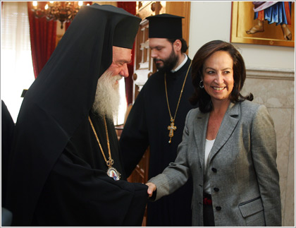 Τα σημαντικά προβλήματα που αφορούν την επανεξέταση της λειτουργίας της εκκλησιαστικής εκπαίδευσης σε όλα τα επίπεδα αλλά και το θέμα της Δια Βίου Εκπαίδευσης και Επιμόρφωσης των κληρικών, συζητήθηκαν μεταξύ άλλων –σύμφωνα με την υπουργό Παιδείας- κατά τη συνάντηση που είχε με τον Αρχιεπίσκοπο Ιερώνυμο.
