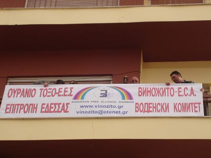 Το κόμμα «Ευρωπαϊκή Ελεύθερη Συμμαχία – Ουράνιο Τόξο» της αυτοαποκαλούμενης «μακεδονικής μειονότητας» στην Ελλάδα, εγκαινίασε την Κυριακή (15/11) γραφείο σε κεντρικό δρόμο της Έδεσσας. Πρόκειται για το δεύτερο γραφείο του κόμματος στη Βόρεια Ελλάδα.