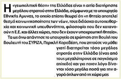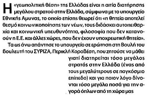 3. Είναι δυνατόν η ψηφοθηρική λογική για την υποστήριξη κάποιων μειοψηφιών της περιοχής, οι οποίες έγιναν αντικείμενο πολιτικής εκμετάλλευσης από τη ΠΓΔΜ το περασμένο έτος, να επηρεάζει κατ΄ελάχιστον την Εθνική Άμυνα της χώρας;