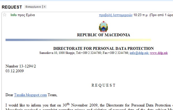 Όταν οι Σλάβοι απειλούν, και οι εδώ…κοιμούνται. Posted on 3 Δεκεμβρίου, 2009 by Λουκάς Σχολιάστε Ένας «πανεπιστημιακός ΨΕΥΤΟΜΑΚΕΔΟΝΑΣ» εκβιάζει το Ελληνικό ιστολόγιο «taxalia» νομίζοντας πως έχει να κάνει με τους «γνωστούς – αγνώστους» της πολιτικής. Δείτε όλη την αλληλογραφία εδώ. Κοινοποιήστε:Tweet Κλικ για αποστολή ενός συνδέσμου μέσω email σε έναν/μία φίλο/η(Ανοίγει σε νέο παράθυρο) Email Κλικ για εκτύπωση(Ανοίγει σε νέο παράθυρο) Εκτύπωση Μου αρέσει! Φόρτωση... Σχετικά