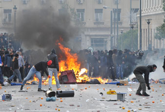 Σε ύφεση βρίσκεται εδώ και περίπου μία ώρα η κατάσταση στο κέντρο της Αθήνας μετά τα επεισόδια που σημειώθηκαν στο Σύνταγμα και τα Προπύλαια ωστόσο παραμένουν περίπου 300 άτομα στην Πρυτανεία του Πανεπιστημίου και στη Νομική όπου μέχρι τις 6 το απόγευμα γίνονταν συγκρούσεις με την αστυνομία και πετροπόλεμος ενώ οι αστυνομικές δυνάμεις έκαναν εκτεταμένη χρήση δακρυγόνων.