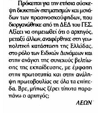 Οι οδηγίες του Αρχηγού. Posted on 10 Δεκεμβρίου, 2009 by Λουκάς 1 σχόλιο Βρε μήπως ξέρει τίποτα παραπάνω ο Αρχηγός; ΑΠΟΓΕΥΜΑΤΙΝΗ – 10/12/2009 – Σελ. 6 Κοινοποιήστε:Tweet Κλικ για αποστολή ενός συνδέσμου μέσω email σε έναν/μία φίλο/η(Ανοίγει σε νέο παράθυρο) Email Κλικ για εκτύπωση(Ανοίγει σε νέο παράθυρο) Εκτύπωση Μου αρέσει! Φόρτωση... Σχετικά