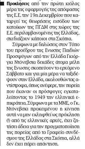 Πρόκληση με ταξίδι «προσφύγων». Posted on 17 Δεκεμβρίου, 2009 by Λουκάς Σχολιάστε Από τη πρώτη κιόλας ημέρα εφαρμογής της απόφασης της Ε.Ε που καταργεί τη βίζα, αρχίσαν τα ταξίδια… ΕΘΝΟΣ (ΣΕΛ.12) Κοινοποιήστε:Tweet Κλικ για αποστολή ενός συνδέσμου μέσω email σε έναν/μία φίλο/η(Ανοίγει σε νέο παράθυρο) Email Κλικ για εκτύπωση(Ανοίγει σε νέο παράθυρο) Εκτύπωση Μου αρέσει! Φόρτωση... Σχετικά