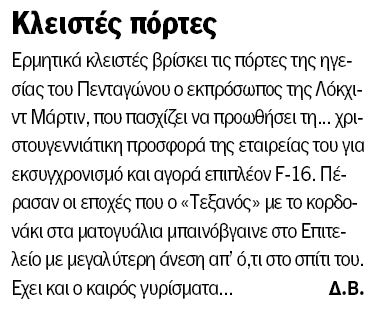 Κλειστές πόρτες. Έχει και ο καιρός…γυρίσματα. Posted on 22 Δεκεμβρίου, 2009 by Λουκάς Σχολιάστε ΕΘΝΟΣ – ΣΕΛ.11 Κοινοποιήστε:Tweet Κλικ για αποστολή ενός συνδέσμου μέσω email σε έναν/μία φίλο/η(Ανοίγει σε νέο παράθυρο) Email Κλικ για εκτύπωση(Ανοίγει σε νέο παράθυρο) Εκτύπωση Μου αρέσει! Φόρτωση... Σχετικά