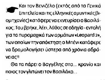 Τελικά και τον Βενιζέλο κατάφερε να εκνευρίσει ο Βασιλάκος… Posted on 23 Δεκεμβρίου, 2009 by Λουκάς 1 σχόλιο ΠΟΝΤΙΚΙ – ΣΕΛ.8 Κοινοποιήστε:Tweet Κλικ για αποστολή ενός συνδέσμου μέσω email σε έναν/μία φίλο/η(Ανοίγει σε νέο παράθυρο) Email Κλικ για εκτύπωση(Ανοίγει σε νέο παράθυρο) Εκτύπωση Μου αρέσει! Φόρτωση... Σχετικά