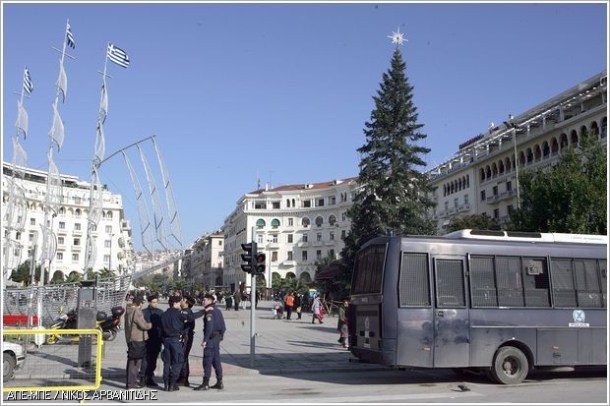 Φρουρούμενα στέκουν από την 1η Δεκεμβρίου στην πλατεία Αριστοτέλους το χριστουγεννιάτικο δέντρο και η φάτνη με τον μικρό Χριστό, την Παναγία, τον Ιωσήφ και τους τρεις μάγους. Δίπλα τους βρίσκεται το παραδοσιακό καράβι στολισμένο με εκατοντάδες λαμπιόνια. Ο Δήμος Θεσσαλονίκης εδώ και χρόνια λαμβάνει μέριμνα για τη φύλαξη του χώρου ενώ πέρσι και πρόπερσι σημειώθηκαν περιστατικά κλοπής του ομοιώματος του νεογέννητου Χριστού από κουκουλοφόρους που είχαν αφήσει στη φάτνη μία τηλεόραση.