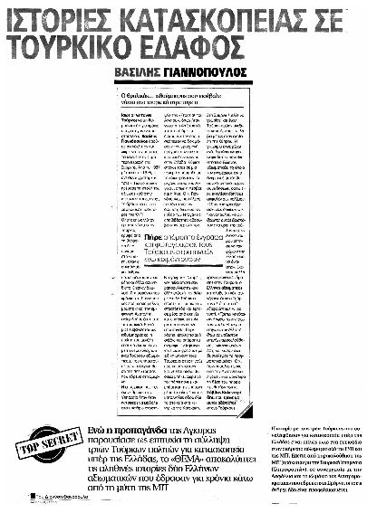Ιστορίες κατασκοπείας σε τουρκικό έδαφος. Posted on 3 Ιανουαρίου, 2010 by Λουκάς 1 σχόλιο Βασίλης Γιαννόπουλος – Σάββας Καλεντερίδης. Οι Έλληνες αξιωματικοί που έδρασαν για χρόνια κάτω από τη «μύτη» της ΜΙΤ. Κλικάρετε τις εικόνες για μεγένθυση Του Διονύση Θανάσουλα / Εφημερίδα: ΤΟ ΘΕΜΑ – ΣΕΛ.44 & 45 – 03/01/2010 Κοινοποιήστε:Tweet Κλικ για αποστολή ενός συνδέσμου μέσω email σε έναν/μία φίλο/η(Ανοίγει σε νέο παράθυρο) Email Κλικ για εκτύπωση(Ανοίγει σε νέο παράθυρο) Εκτύπωση Μου αρέσει! Φόρτωση... Σχετικά