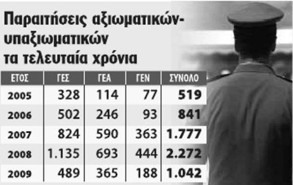 Με το στιλό στο χέρι βρίσκονται από χθες το πρωί περίπου 10.000 στρατιωτικοί, έτοιμοι να υπογράψουν και να καταθέσουν τις παραιτήσεις τους στα αρμόδια επιτελεία. Λόγος, οι προχθεσινές δηλώσεις του υπουργού Εργασίας Ανδρέα Λοβέρδου, ότι δεν θα βγαίνουν στη σύνταξη σε μικρές ηλικίες ακόμα και αν έχουν συμπληρώσει τα απαιτούμενα από τον νόμο χρόνια υπηρεσίας.