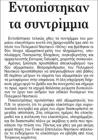 One thought on “07.02.1996: Εντοπίστηκαν τα συντρίμμια του ελικοπτέρου που έπεσε στη κρίση των Ιμίων”