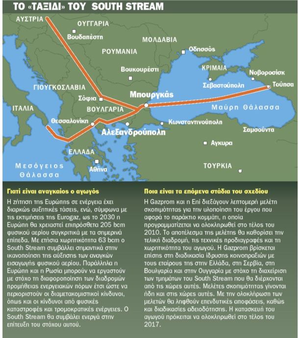 Ο ρώσος πρωθυπουργός Βλαντίμιρ Πούτιν προέτρεψε δημοσίως την Ελλάδα να συνεργαστεί για την κατασκευή και λειτουργία τού ιδιαίτερης σημασίας «ευρωπαϊκού» αγωγού μεταφοράς φυσικού αερίου.