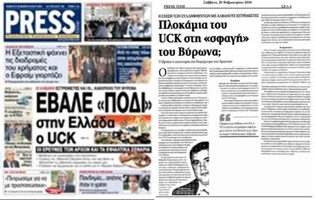 Η εξτρεμιστική παραστρατιωτική οργάνωση που ονειρεύεται τη «Μεγάλη Αλβανία» και απειλεί να αιματοκυλίσει όλα τα Βαλκάνια έχει απλώσει τα πλοκάμια στην πρωτεύουσα και πράκτορές της αναλαμβάνουν σιγά-σιγά δράση; Αυτά τα κρίσιμα ερωτήματα απασχολούν τις Υπηρεσίες Πληροφοριών που καλούνται να δώσουν απαντήσεις και μάλιστα άμεσες και έγκυρες. Το θέμα ξεκίνησε, σύμφωνα με πληροφορίες –τις οποίες οι αρμόδιες Αρχές δεν επιβεβαιώνουν– από το μακελειό στον Βύρωνα και τις έρευνες που το ακολούθησαν, κατά τις οποίες στη γιάφκα των εγκληματιών βρέθηκαν και προκηρύξεις του UCK, μαζί με τον τεράστιο αριθμό όπλων που διέθεταν οι Αλβανοί ληστές.