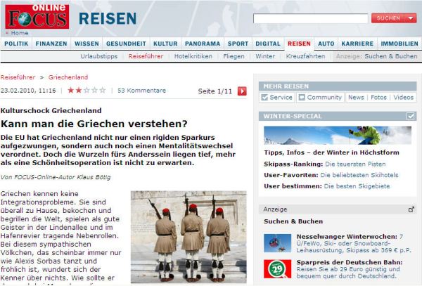 «Μπορεί κανείς να καταλάβει τους Έλληνες;» διερωτάται το περιοδικό Focus, την ώρα που συνεχίζονται οι έντονες αντιδράσεις για το εξώφυλλό του με την Αφροδίτη της Μήλου με το σηκωμένο μεσαίο δάχτυλο. Και ο υπέρτιτλος ακόμα πιο εριστικός: «πολιτισμικό σοκ: Ελλάδα». Μέσω της ιστοσελίδας του περιοδικού, ο Klaus Bοtig ξεσπαθώνει κατά των…Ελλήνων και της νοοτροπίας τους.