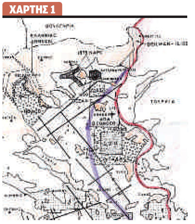 Στον χάρτη φαίνονται οι παραχωρήσεις που είχαν δοθεί στο Αιγαίο πριν από τον Ιούλιο του 1974, με διεθνείς συμβάσεις, σε διεθνείς εταιρείες πετρελαίου, μερικές από τις οποίες είναι πανίσχυρες, όπως CONOCO, TEXACO, Chevron κ. λπ. Είναι γνωστό ότι οι εταιρείες αυτές είχαν και έχουν δυνατότητες πολιτικών παρεμβάσεων για διασφάλιση των συμφερόντων τους. Τα σκιασμένα τμήματα δείχνουν τις παραχωρήσεις σε ξένες εταιρείες και οι μαύρες ευθείες τα σεισμικά προφίλ που είχαν γίνει για τις έρευνες πετρελαίου από την Ελλάδα.