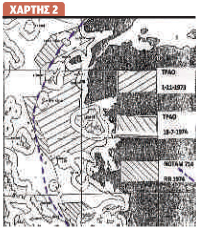 Η Τουρκία, για να αμφισβητήσει τα κυριαρχικά δικαιώματα της Ελλάδας στο Αιγαίο, τον Νοέμβριο του 1973 και το 1974, «εκχώρησε» περιοχές του Αιγαίου στην κρατική της εταιρεία πετρελαίου, TPAO, εκδίδοντας τον αντίστοιχο χάρτη (Χάρτης 2).