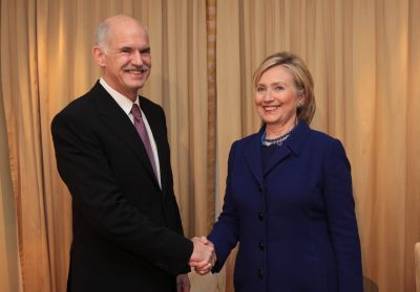 Το ενδεχόμενο λήψης μέτρων για την αντιμετώπιση της κερδοσκοπίας στο πλαίσιο του G20, συζήτησε ο Γιώργος Παπανδρέου με την υπουργό Εξωτερικών των ΗΠΑ Χίλαρι Κλίντον κατά τη σημερινή τους συνάντηση στην Ουάσινγκτον. Η αντιμετώπιση της οικονομικής κρίσης, κυριάρχησε κατά τη σημερινή συνάντηση,όπως φάνηκε άλλωστε από τις δηλώσεις που έγιναν μετά τη λήξη της. Η Χίλαρι Κλίντον, δήλωσε ότι “υποστηρίζει τα μέτρα που έλαβε η Ελλάδα για να ξεπεράσει την κρίση”, ενώ προσέθεσε ότι “η λήψη μέτρων για την αντιμετώπιση της κερδοσκοπίας, θα πρέπει να συζητηθεί στο πλαίσιο του G20”. Η υπουργός Εξωτερικών των ΗΠΑ, χαρακτήρισε στρατηγικό εταίρο την Ελλάδα, αλλά και σύμμαχο που έχει παίξει σημαντικό ρόλο για τη σταθεροποίηση των Βαλκανίων. Επίσης, ανέφερε ότι στη συνάντηση με τον Έλληνα πρωθυπουργό, συζητήθηκε και το θέμα της ένταξης στο ΝΑΤΟ των χωρών στα Δυτικά Βαλκάνια. Παράλληλα, ευχαρίστησε το Γ. Παπανδρέου για τη στήριξη της Ελλάδας, όσον αφορά το Αφγανιστάν.