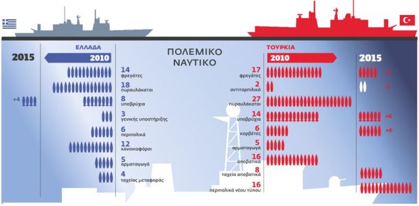 Με την ολοκλήρωση μετά το 2015 του μεγάλου αεροναυτικού εξοπλιστικού προγράμματός της που ήδη βρίσκεται σε εξέλιξη η Τουρκία θα αποκτήσει για πρώτη φορά το αδιαμφισβήτητο πλεονέκτημα στη θάλασσα, με ό,τι αυτό μπορεί να συνεπάγεται για μια χώρα που δέχεται τόσο έντονη πίεση για κάποιες από τις βραχονησίδες και τις θαλάσσιες περιοχές της. Ακούγεται συχνά ότι η Τουρκία έχει «κι άλλα μέτωπα». Στην πραγματικότητα όμως δεν έχει κανένα μέτωπο που να απαιτεί μαχητικά αεροσκάφη πέμπτης γενιάς ή, πολύ περισσότερο, στόλο με την ισχύ και τις δυνατότητες που αυτή τη στιγμή χτίζει. Εκείνο που συμβαίνει το περιέγραψε πριν από μερικά χρόνια ο τέως αρχηγός των τουρκικών ενόπλων δυνάμεων Χιλμί Οζκιόκ, πατέρας του νέου ναυτικού δόγματος της Αγκυρας, και το επανέλαβε πρόσφατα ο εν ενεργεία διάδοχός του στρατηγός Μπασμπούγ μιλώντας σε αξιωματικούς του Ναυτικού στον ναύσταθμο Golcuk: «Στις αυτοκρατορίεςη ναυτική ισχύς είναι εξαιρετικά σημαντική. Το Ναυτικό έχει διαδραματίσει μεγάλο ρόλο στην επικράτηση και στην υπεροχή της Πορτογαλίας, της Ισπανίας, της Ολλανδίας, της Μεγάλης Βρετανίας και των Ηνωμένων Πολιτειών. Από κάθε άποψη, αν σήμερα η θαλάσσια ισχύς είναι μία φορά σημαντική, αύριο θα είναι πέντε. Στο Αιγαίο έχουμε ήδη προβλήματα και για την επίλυσή τους έχουμε ανάγκη από ισχυρό Πολεμικό Ναυτικό».