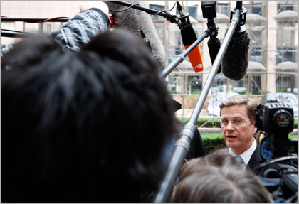 Στην αντεπίθεση πέρασε το Βερολίνο με τον Γερμανό υπουργό Εξωτερικών Γκίντο Βέστερβέλε να απαντά στις κατηγορίες του αντιπροέδρου της κυβέρνησης Θεόδωρου Πάγκαλου για την απροθυμία του Βερολίνου να βοηθήσει την Αθήνα, και στα περί κερδοσκοπίας των γερμανικών χρηματοπιστωτικών ιδρυμάτων σε βάρος της Ελλάδας, σπεκουλάροντας τα ελληνικά ομόλογα