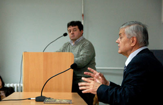 Το δίδυμο των σλάβων «μακεδονιστών»: Tome Boševski και Aristotel Tentov στη διάρκεια της τοποθέτησής τους «περί Μακεδόνων στη Σιβηρία».