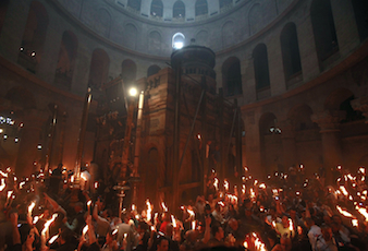 Σε κλίμα κατάνυξης αλλά και κάτω από ισχυρά μέτρα ασφαλείας πραγματοποιήθηκε η τελετή της Αφής του Αγίου Φωτός στο Ναό της Αναστάσεως στα Ιεροσόλυμα. Ο Πατριάρχης Ιεροσολύμων Θεόφιλος ο Γ’ εξήλθε με το Αγιο Φως από τον Πανάγιο Τάφο, στις 2 το μεσημέρι, στον ασφυκτικά γεμάτο ναό κρατώντας δυο δέσμες των 33 κεριών.