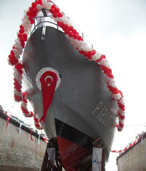 Η εξοπλιστική φρενίτιδα της γείτονας χώρας συνεχίζεται και καθελκύστηκε στα ναυπηγεία Dearsan την Παρασκευή 9 Απριλίου με χρονική καθυστέρηση δύο μηνών, το πρώτο (P1200) από τα συνολικά 16 περιπολικά ανοικτής θαλάσσης κλάσης YTKB-400. Όπως φαίνεται από την φωτογραφία αυτή την περίοδο ναυπηγούνται δύο ακόμα πλοία στις εγκαταστάσεις των ναυπηγείων Dearsan.