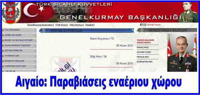 Σύμφωνα με αναφορά του τουρκικού στρατού, τουρκικά F-16 αναχαιτίστηκαν δύο φορές από ελληνικά πολεμικά αεροσκάφη ενώ βρίσκονταν σε αποστολή κατάρτισης στο διεθνή εναέριο χώρο πάνω από το Αιγαίο πέλαγος την Τετάρτη στις 14 Απριλίου 2010 στις 15:20. Επίσης τουρκικά πολεμικά αεροσκάφη τύπου F-16 αναχαιτίστηκαν δύο φορές από ελληνικά πολεμικά την Τρίτη ενώ βρίσκοντα σε εκπαιδευτική αποστολή στο διεθνή εναέριο χώρο του Αιγαίου.