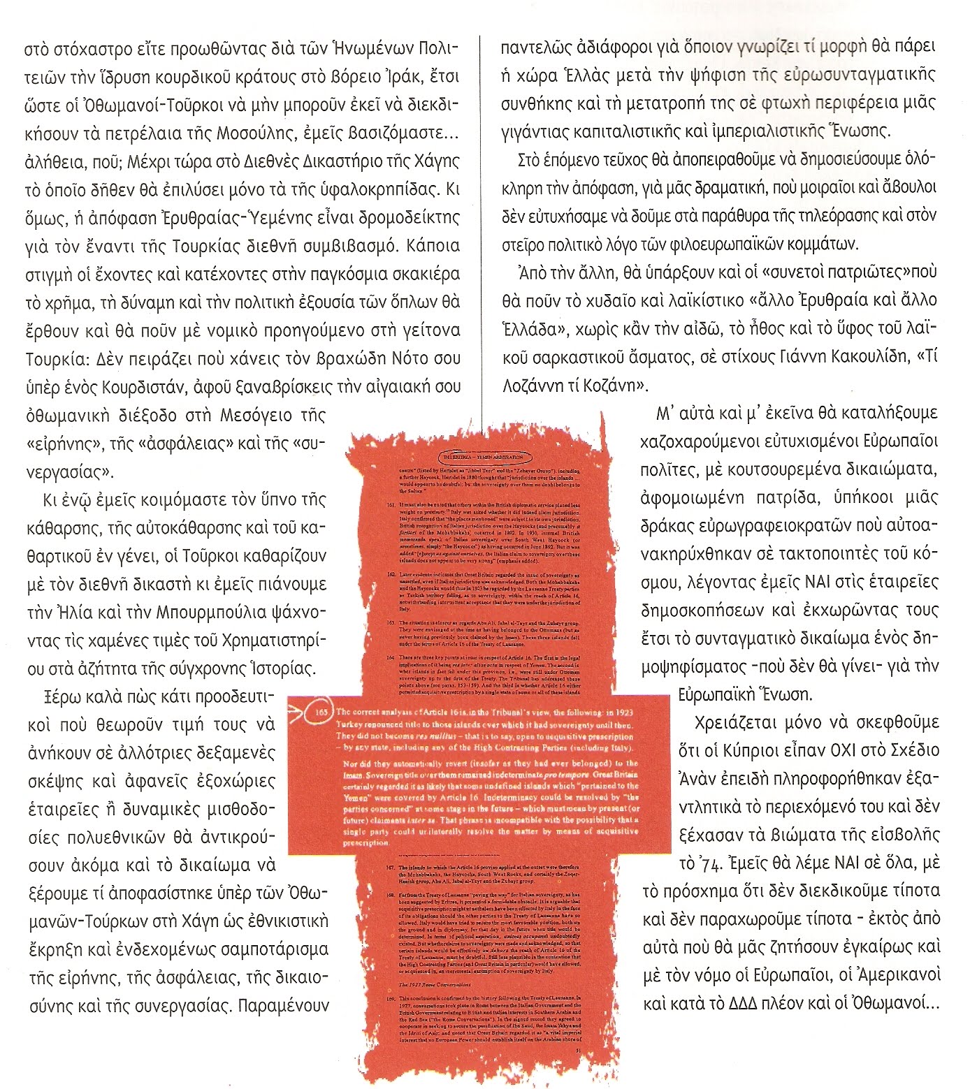 Αυτή η απόφαση μου φαίνεται σαν πρόκριμα για την μελλοντική απόφαση του Διαστηρίου της Χάγης επί της υφαλοκριπίδας. Έχουμε ακόμη να ξάνουμε πολύ μαλλί .