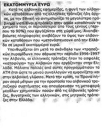 Στον πρώτο κίνδυνο της Ελλάδας οι αλβανοί μεταφέρουν τα λεφτά τους και κάνουν μπίζνες με τούρκους και Ιταλούς.