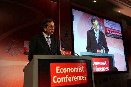 Τον περιορισμό του αριθμού των βουλευτών σε 200 πρότεινε ο Αντώνης Σαμαράς, από το βήμα του συνεδρίου του Economist, ως μέτρο που θα συμβάλλει στην υπέρβαση της κρίσης. Τόνισε ότι η Νέα Δημοκρατία θα συμβάλλει για την έξοδο από την κρίση, λέγοντας ότι οφείλει να είναι ρεαλιστής, αλλά άφησε να εννοηθεί ότι αυτό δεν μπορεί να μεταφραστεί ως συναίνεση στην κυβερνητική πολιτική -την οποία εξάλλου θεωρεί υπεύθυνη για την κρίση δανεισμού.Ο αρχηγός της Νέας Δημοκρατίας είπε ότι η νέα κυβέρνηση έδειξε πρωτοφανή και χωρίς προηγούμενο αδυναμία να πείσει τις αγορές ότι μπορεί να διαχειριστεί τα προβλήματα της ελληνικής οικονομίας. Εκτίμησε ότι τελικώς η Ελλάδα βγήκε εντελώς έξω από τις διεθνείς αγορές, «επειδή άλλαξε η εικόνα της διαχείρισής της».