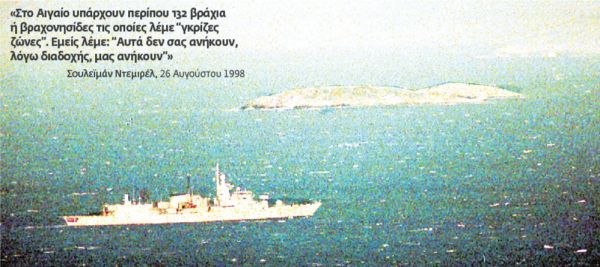 1. Αποδέχεται η Ελλάδα μία ή περισσότερες της μιας διαφορές με την Τουρκία στο Αιγαίο; Ο πρωθυπουργός κ. Γ. Παπανδρέου επαναλαμβάνει ότι η μόνη διαφορά των δύο χωρών είναι η οριοθέτηση της υφαλοκρηπίδας. Αν οι δύο πλευρές δεν τα βρουν, η Αθήνα προτείνει παραπομπή του ζητήματος στο Διεθνές Δικαστήριο της Χάγης. Τη θέση περί μιας διαφοράς απέρριψε με την πρόσφατη συνέντευξή του στο «Βήμα» ο τούρκος υπουργός Εξωτερικών Αχμέτ Νταβούτογλου. Οι πληροφορίες επιμένουν ότι στα τέλη του 2003 το κοινό ανακοινωθέν Αθήνας- Αγκυρας για έναρξη διμερών διαπραγματεύσεων ήταν έτοιμο. «Η αλήθεια είναι» σημειώνουν έμπειροι διπλωμάτες «ότι η οριοθέτηση της υφαλοκρηπίδας δεν μπορεί να πραγματοποιηθεί χωρίς να ξεκαθαριστεί το εύρος των χωρικών υδάτων. Επιπλέον,μπορεί να υπάρξει παραπομπή στη Χάγη με τις γκρίζες ζώνες στο τραπέζι;» ρωτούν. 2. Ποια θα είναι η γεωγραφική περιοχή οριοθέτησης της υφαλοκρηπίδας;