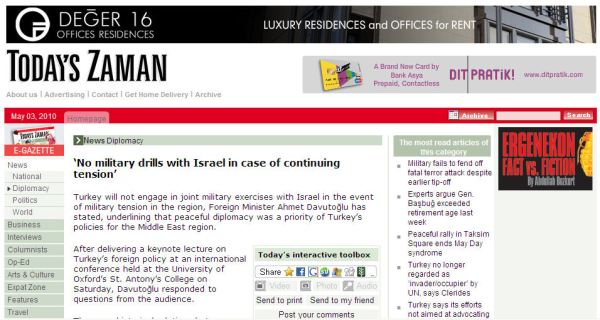 Υπάρχουν ιστορικές σχέσεις μεταξύ της Τουρκίας και του Ισραήλ, και τα τουρκικά εδάφη ήταν μια «ασφαλή ζώνη» για το εβραϊκό έθνος. Ο Νταβούτογλου σημείωσε όταν ρωτήθηκε για τον αποκλεισμό του Ισραήλ από μια κοινή διεθνή άσκηση τον περασμένο Οκτώβριο. Την εποχή εκείνη, οι ασκήσεις στην Τουρκία, οι οποίες περιλαμβάνουν τις ΗΠΑ και το ΝΑΤΟ, είχαν μετατραπεί σε μια εθνική στρατιωτική άσκηση.