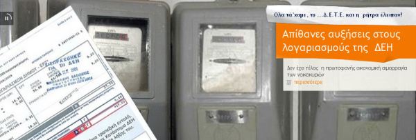 Αλλά με αφορμή τα δημοσιεύματα που ακολούθησαν σε σχέση με τις επιβαρύνσεις των λογαριασμών της ΔΕΗ, η κρατική επιχείρηση προχώρησε στην έκδοση επίσημης ανακοίνωσης προκειμένου να τονίσει ότι η ίδια δεν έχει προχωρήσει σε αυξήσεις των τιμολογίων της – άλλο, βεβαίως, που ο πρόεδρος και διευθύνων σύμβουλος της επιχείρησης κ. Αρθούρος Ζερβός ζήτησε προσφάτως αυξήσεις 4,3% ετησίως έως το 2013 για να αντιμετωπισθεί το κόστος των ρύπων…
