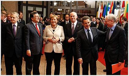 Σε οριστική συμφωνία για την ενεργοποίση του πακέτου στήριξης της Ελλάδας ύψους 110 δισ. ευρώ κατέληξαν οι ηγέτες των 16 χωρών – μελών της ευρωζώνης. Ήδη, σύμφωνα με πηγές που επικαλούνται το Γαλλικό Πρακτορείο και το Ρόιτερς οι αρχηγοί των κρατών – μελών της ευρωζώνης κατέληξαν σε συμφωνία να ενισχύσουν το Σύμφωνο Σταθερότητας εφαρμόζοντας πιο αυστηρούς κανόνες, εν μέσω αυξανόμενης ανησυχίας ότι το “ελληνικό πρόβλημα” τείνει να γίνει παγκόσμιο.Σύμφωνα με ευρωπαϊκή πηγή, που επικαλούνται τα δύο Πρακτορεία Ειδήσεων, ο πρόεδρος της Ευρωπαϊκής Κεντρικής Τράπεζας, Ζαν-Κλοντ Τρισέ, χαρακτήρισε την κρίση «συστημική», τονίζοντας ότι απειλεί ολόκληρη τη ζώνη του ευρώ.