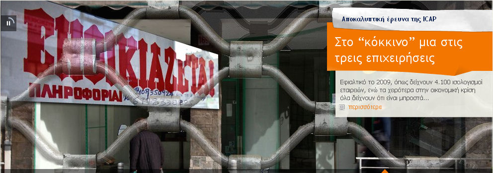 Ζημιογόνο ήταν το 2009 για το ένα τρίτο των ελληνικών επιχειρήσεων σύμφωνα με έρευνα της Icap. Όπως αναφέρεται σε σχετική ανακοίνωση, η Icap Group ανέλυσε 4.100 ισολογισμούς του 2009 οι οποίοι αποτελούν περίπου το 10% του συνόλου των εταιρειών Α.Ε. και ΕΠΕ που υποχρεούνται να δημοσιεύουν ισολογισμούς.