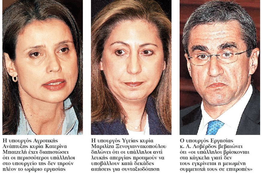 Με λευκή απεργία αντιδρούν πολλοί εργαζόμενοι σε υπουργεία στην περικοπή μισθών και επιδομάτων.