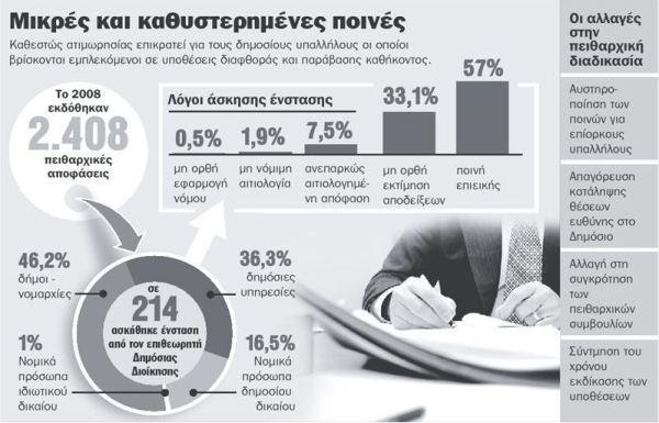 Αυστηρότερες ποινές, που μπορεί να φτάσουν μέχρι την άμεση απομάκρυνση υπαλλήλων για ορισμένα αδικήματα, ταχύτερες διαδικασίες έκδοσης αποφάσεων, αλλά και τροποποίηση της λειτουργίας των πειθαρχικών συμβουλίων, είναι μερικά από τα μέτρα που εξετάζονται να ληφθούν για την εξυγίανση του Δημοσίου.