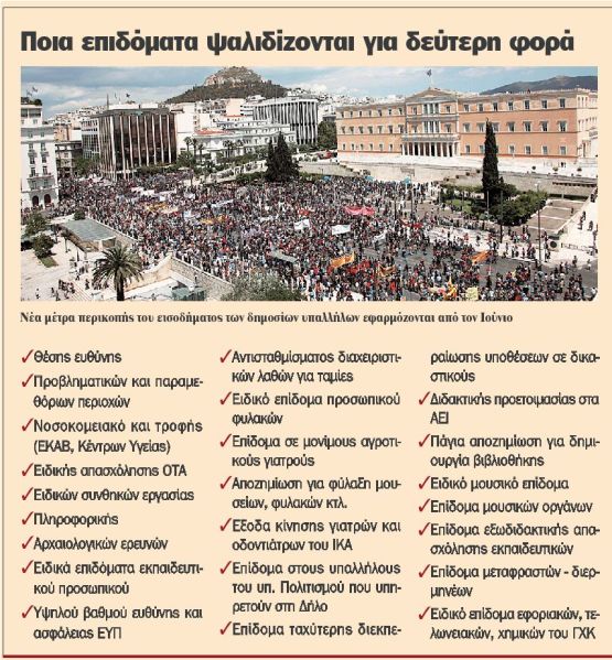 Σύμφωνα με τις νέες διατάξεις, τα πάσης φύσεως επιδόματα, αποζημιώσεις και αμοιβές γενικά καθώς και τα με οποιαδήποτε άλλη ονομασία οριζόμενα και απ΄ οποιαδήποτε γενική ή ειδική διάταξη προβλεπόμενα, των δημοσίων υπαλλήλων μειώνονται κατά ποσοστό 8%. Η ανωτέρω μείωση, η οποία ισχύει από 1.6.2010, θα υπολογισθεί στα ήδη μειωμένα ποσά όπως αυτά έχουν διαμορφωθεί την 31η Μαΐου 2010. Επισημαίνεται ότι στις παραπάνω μειώσεις υπόκεινται και οι αποζημιώσεις, επιμίσθια ή αμοιβές που καταβάλλονται σε λειτουργούς ή υπαλλήλους του Δημοσίου για την παροχή πρόσθετου διδακτικού έργου στις ανωτέρω προβλεπόμενες μειώσεις.