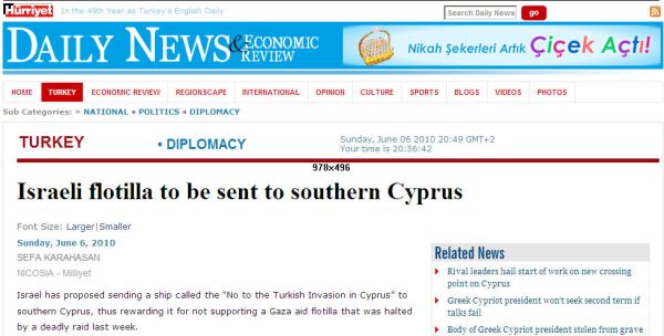 Με βάση δημοσιεύματα της Κυπριακής εφημερίδας «ΦΙΛΕΛΕΥΘΕΡΟΣ» και της Ισραηλινής “JERUSALEM POST” έχει δημοσιευτεί πως το Ισραήλ σκοπεύει να στείλει αποστολή ακτιβιστών φέρνοντας το μήνυμα «Βάλτε ένα τέλος στη Τουρκική Κατοχή».
