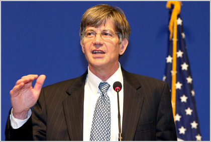 Σε συνέντευξή του στο ευρασιατικό τμήμα της «Φωνής της Αμερικής» (Voice of America), σημείωσε πως οι ΗΠΑ επιθυμούν ό,τι καλύτερο για τη διαδικασία διευθέτησης του ζητήματος με το όνομα της γειτονικής χώρας, ότι με ικανοποίηση θα μπορούσαν να ανταλλάξουν ιδέες και πως ενθαρρύνουν αμφότερες τις πλευρές να στρέψουν το βλέμμα τους προς την τελική επιβράβευση.