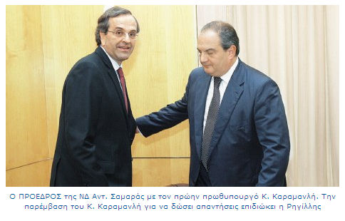 Οπως τονίζουν βουλευτές της ΝΔ, που συνομιλούν τακτικά με τον κ. Σαμαρά, μια τέτοια παρέμβαση θα δώσει τη δυνατότητα στον πρόεδρο της ΝΔ να απεμπλέξει τη δική του εικόνα από το παρελθόν, καθώς θα έχει τη δυνατότητα, όταν ερωτάται, να παραπέμπει στην τοποθέτηση του κ. Καραμανλή.