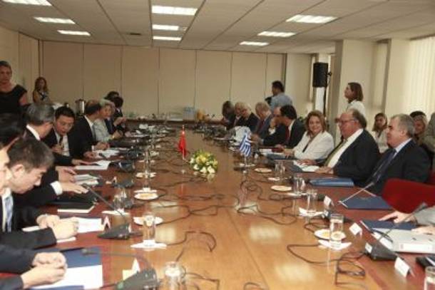 Διευρυμένη συνάντηση υπό τον αντιπρόεδρο της κυβέρνησης Θεόδωρο Πάγκαλο και τον Κινέζο ομόλογό του Ζανγκ Ντετζιάνγκ, η οποία αναμένεται να ολοκληρωθεί με την υπογραφή 14 συμφωνιών, πραγματοποιείται στο υπουργείο Εξωτερικών.