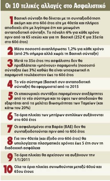 Υστερα από παλινωδίες μηνών, αντιπαραθέσεις στο εσωτερικό ακόμη και του ΠΑΣΟΚ, εμπλοκή των επιτηρητών από το εξωτερικό και, κυρίως, ένα γενικευμένο κλίμα φυγής που προκλήθηκε μεταξύ των ασφαλισμένων και πανικού συνολικά στην κοινωνία, το υπουργείο Εργασίας «κλείδωσε» με την τρόικα τις οριστικές αλλαγές στο συνταξιοδοτικό.