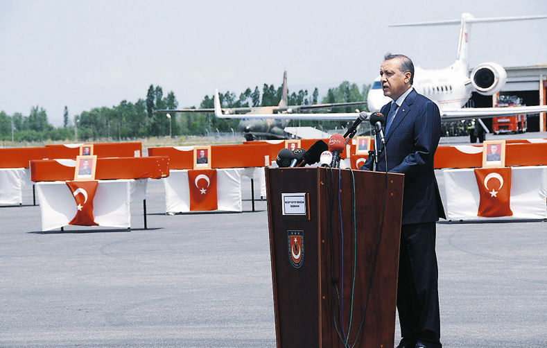 Επικεφαλής της αντιπροσωπείας των κρατικών και στρατιωτικών αξιωματούχων στην κηδεία των 11 Τούρκων στρατιωτών που σκοτώθηκαν το Σάββατο από πυρά Κούρδων ανταρτών, ο πρωθυπουργός Ρετζέπ Ταγίπ Ερντογάν ορκίστηκε ανηλεή πόλεμο κατά του ΡΚΚ, έως ότου οι Κούρδοι αντάρτες «πνιγούν στο ίδιο τους το αίμα» και «εξαφανιστούν», καθώς βρίσκεται σε πλήρη εξέλιξη μια νέα, σκληρή, εαρινή επιχείρηση των τουρκικών ενόπλων δυνάμεων κατά των ανταρτών, οι οποίοι προειδοποιούν με πλήγματα εναντίον «όλων των πόλεων της Τουρκίας».