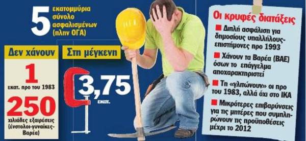 Δηλαδή, δεν επιβαρύνονται ιδιαίτερα οι ασφαλισμένοι προ του 1983. Σχεδόν καθόλου οι δημόσιοι υπάλληλοι αυτής της περιόδου, οι ασφαλισμένοι σε ΔΕΚΟ και τράπεζες καθώς και στα ειδικά Ταμεία.