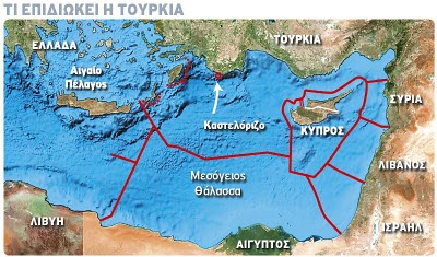Η Τουρκία προσπαθεί να δημιουργήσει μία Αποκλειστική Οικονομική Ζώνη (ΑΟΖ) στη Μεσόγειο, όπως ακριβώς έκανε στη Μαύρη Θάλασσα. Στη περίπτωση της Μεσογείου προσπαθεί να αποκόψει την Ελλάδα από τη Κύπρο.