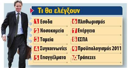 Από την ανάκριση της τρόικας, που έπιασε δουλειά πρωί πρωί, περνούν έξι υπουργοί της κυβέρνησης και αναζητούνται λύσεις μπροστά στο ενδεχόμενο να κινδυνεύσει το Πρόγραμμα Οικονομικής Πολιτικής.Το πολυπληθές κλιμάκιο της Ευρωπαϊκής Ενωσης, του Διεθνούς Νομισματικού Ταμείου και της Ευρωπαϊκής Κεντρικής Τράπεζας, που αφίχθη χθες στην πρωτεύουσα, ξεκινάει την ανάκριση από τον υπουργό Οικονομικών Γιώργο Παπακωνσταντίνου. Το πρόγραμμα επαφών περιλαμβάνει άλλους 5 υπουργούς: Οικονομίας Λούκα Κατσέλη, Αμυνας Ευάγγελο Βενιζέλο, Εργασίας Ανδρέα Λοβέρδο, Υποδομών Δημήτρη Ρέππα και Υγείας Μαριλίζα Ξενογιαννακοπούλου, με τους οποίους θα συναντηθούν το διήμερο Τετάρτη-Πέμπτη.