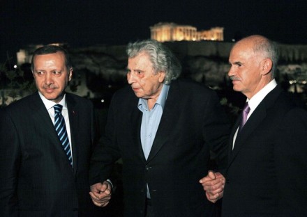 Ο Μίμης δήλωνε ότι «είμαστε υπό κατοχή από τον στρατό με τα λευκά κολάρα του ΔΝΤ» και παραδίπλα ο κυβερνητικός εκπρόσωπος Γ. Πεταλωτής δήλωνε ότι «διαχρονικά ο Μίκης εκφράζει τους αγώνες του λαού για αλλαγή και πρόοδο». Η Αλέκα Παπαρήγα καθότανε δίπλα στον Μίκη και από πίσω ο βουλευτής του ΚΚΕ Θ. Παφίλης με τον Αλ. Λυκουρέζο. Παρόντες οι υπουργοί Δρούτσας και Γερουλάνος . Ποιους εκπροσωπεί τελικώς ο Μίκης;