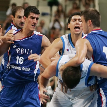 Θλιβερά επεισόδια μεταξύ των παικτών της Ελλάδας και της Σερβίας οδήγησαν σε οριστική διακοπή την αναμέτρηση, με την οποία θα έκλεινε η «αυλαία» του 24ου τουρνουά «Ακρόπολις». Περίπου 3 λεπτά πριν τη λήξη του αγώνα και ενώ η ελληνική ομάδα βρισκόταν μπροστά στο σκορ με 74-73, μία διαμάχη μεταξύ του Φώτση και του Τεόντοσιτς δυναμίτισε το κλίμα για να ακολουθήσει σύρραξη μεταξύ των παικτών και «θύμα» τον Γιάννη Μπουρούση ο οποίος αποχώρησε αιμόφυρτος από το παρκέ, μετά από απαράδεκτη κίνηση του Κρστιτς να πετάξει καρέκλα στον Ελληνα σέντερ.