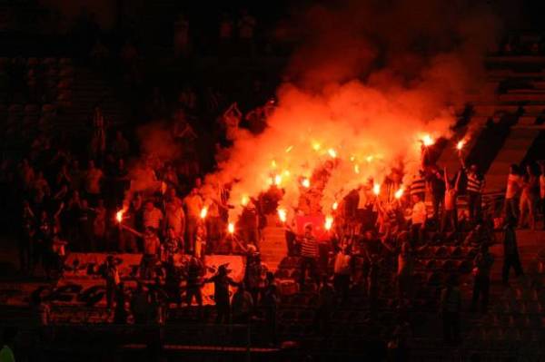 – Πριν τον αγώνα η αστυνομία εντόπισε και απαγόρευσε να περάσει μέσα στο γήπεδο ένα μεγάλο πανό που έγραφε: «πάλι πίσω σε εμάς μετά το 1913» υπονοώντας την απελευθέρωση της Θεσσαλονίκης (σ.σ. το 1912) απ’ τον ελληνικό στρατό…