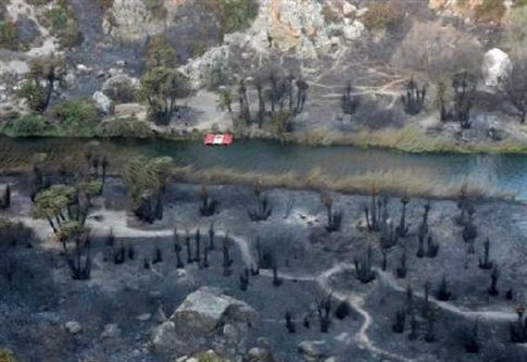 Η πυρκαγιά της Κυριακής κατέκαψε το 70% του πανέμορφου φοινικοδάσους (Φωτογραφία: ICON)