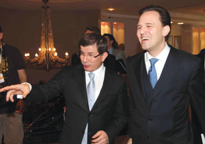 Στις εξέδρες του γηπέδου ο Νταβούτογλου σαφώς ικανοποιημένος, αλλά σοβαρός.